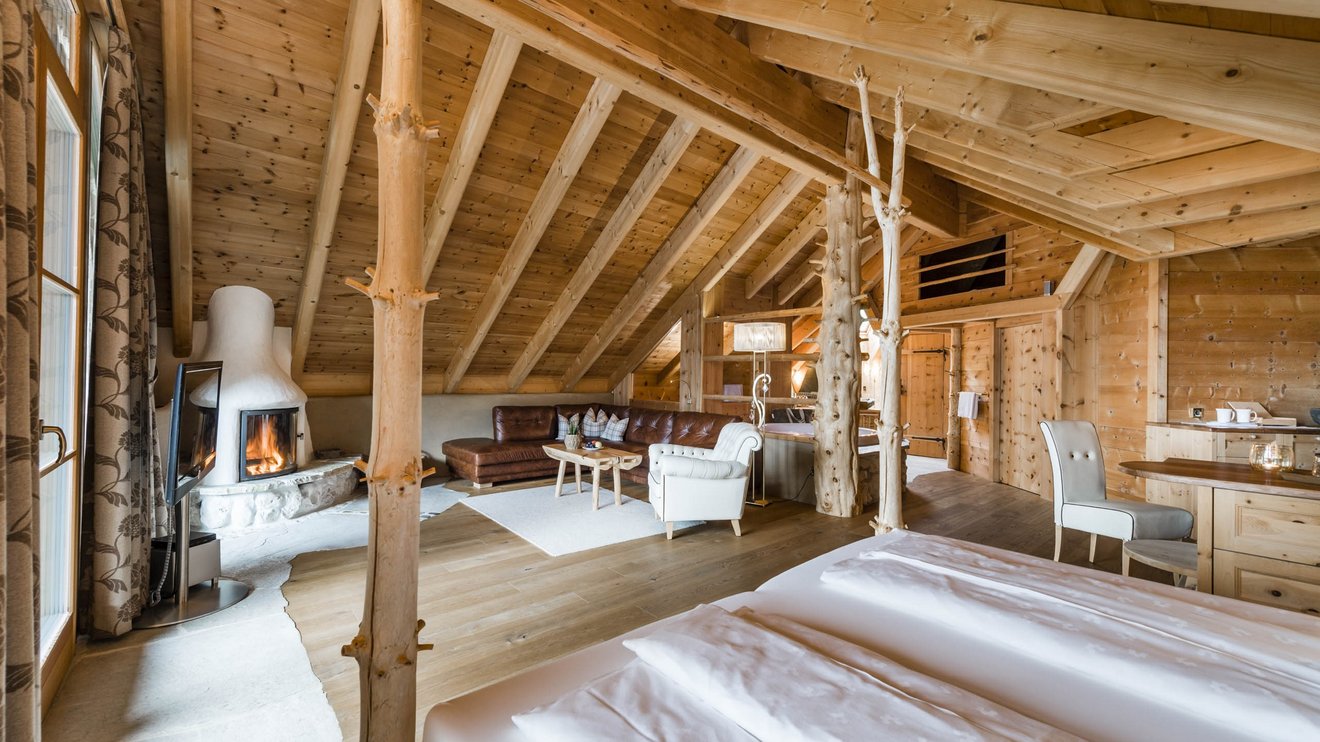 Diese traumhafte Suite vereint Wellness und Romantik auf einzigartige Weise. Der großzügige private Wellnessbereich mit Whirlpool und Sauna sowie die liebevolle Gestaltung mit einheimischen Hölzern schaffen eine warme und behagliche Atmosphäre. Mit einem offenen Kamin und Südbalkon bietet sie den perfekten Rückzugsort für unvergessliche Momente. Auf Wunsch kann die Suite mit dem angrenzenden Naturzimmer Lavendel zu einer noch großzügigeren Familiensuite erweitert werden.