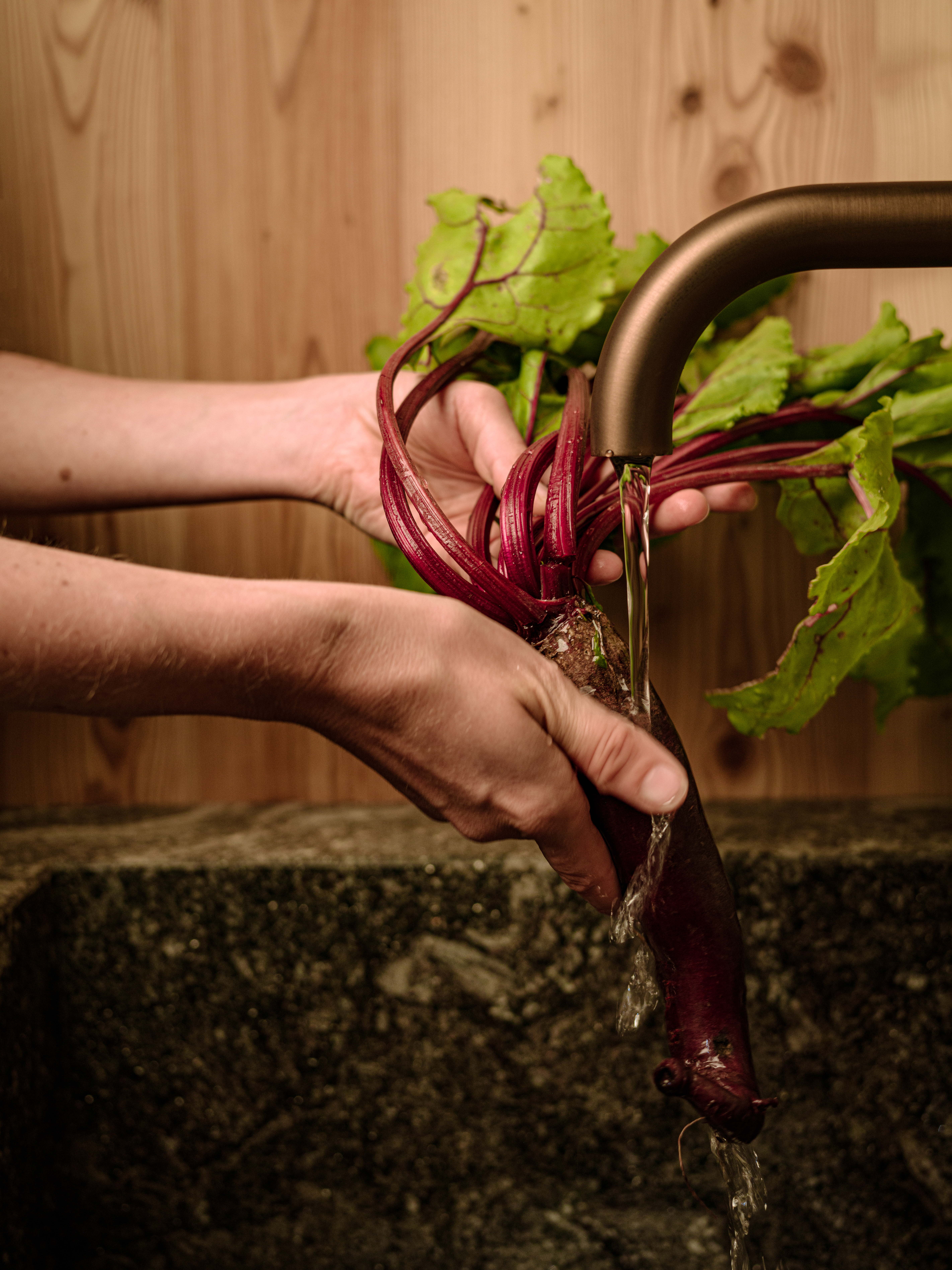 In alto, nella Val di Funes nelle Dolomiti, con vista sulle Odle, si trova l’orto biologico alpino del Lüsnerhof. A 1.350 metri di altitudine, qui crescono, secondo i principi della permacultura e dei metodi di coltivazione sostenibile, prodotti biologici regionali che arricchiscono la cucina naturale del Lüsnerhof in Alto Adige.