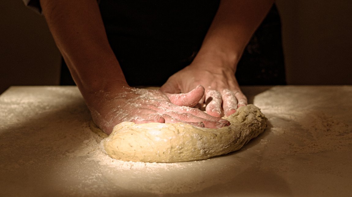 - Unire olio, uovo e acqua tiepida, impastare con la farina fino a ottenere un impasto omogeneo.