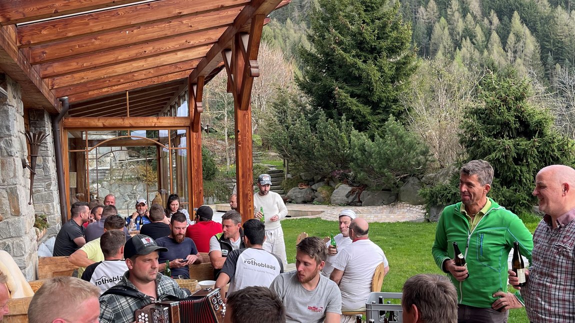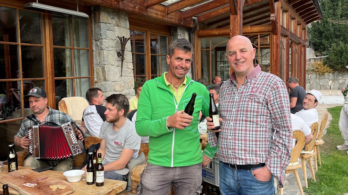 Nella seconda foto: il capo ("costruzione") Franz con il miglior capocantiere "il nostro Manni" alla cerimonia di inaugurazione con gli operai sulla terrazza!
