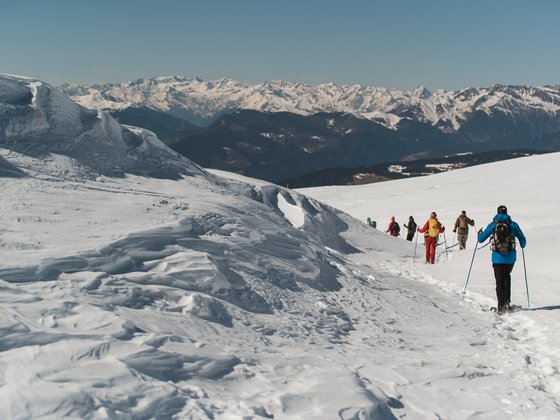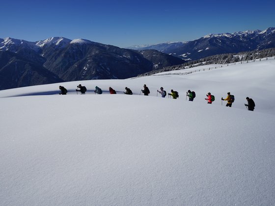Le escursioni durano, a seconda del percorso e del livello di difficoltà, tra le 2 e le 5 ore e portano a panorami mozzafiato e luoghi idilliaci e incontaminati. È importante non sottovalutare che camminare sulla neve è decisamente più faticoso rispetto all’estate. Quindi meglio pianificare percorsi più brevi rispetto alle escursioni estive. Le nostre guide escursionistiche saranno felici di aiutare a scegliere il percorso più adatto.