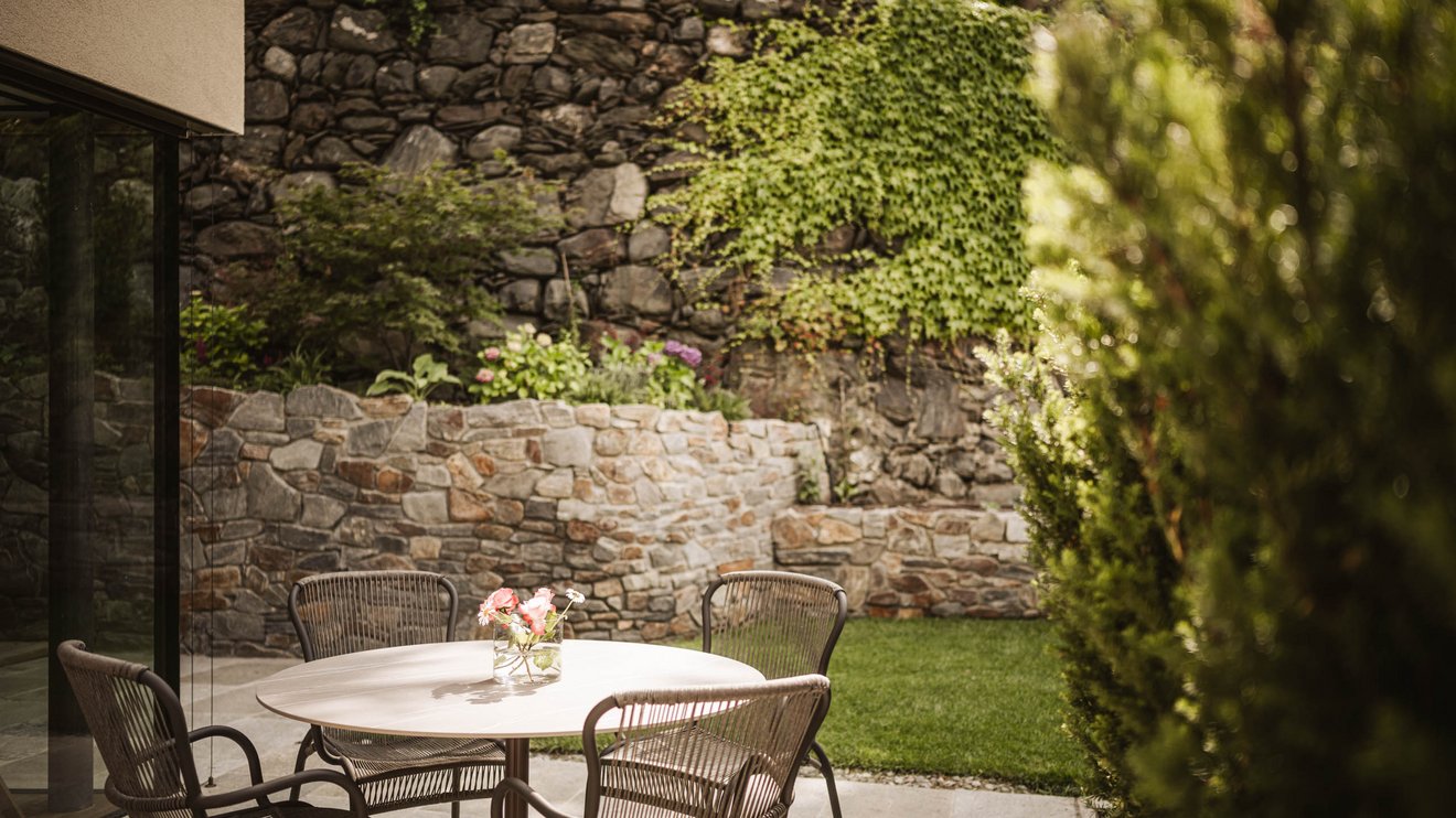 Das 65m² große Garten Apartment Bachquell ist mit zwei Schlafzimmern, dem großzügigen Wohnraum und dem 30m² großen Privatgarten ein traumhaftes Brixner Ferienidyll für eine ganze Familie oder eine Gruppe von Freunden für bis zu fünf Personen. Die zwei luxuriösen Marmorbäder warten mit einer herrlich heißen Dusche nach einem Abenteuer in den Dolomiten oder einem Gourmet- oder Shoppingausflug in die Brixner Altstadt auf, die hochwertige Küche mit Kochinsel und direktem Zugang zum Privatgarten ist der Treffpunkt für gemeinsame Kochabende mit einem genüsslichen Kerner aus der Weinkellerei des nahegelegenen Kloster Neustift.