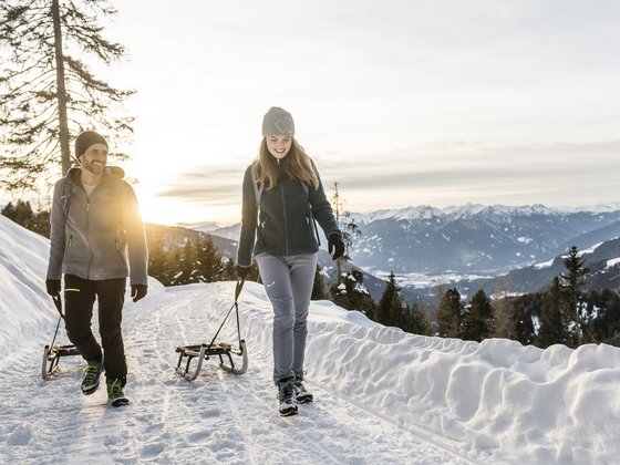 Wunderbar kombinieren lässt sich eine vergnügliche Rodelpartie mit einer Winterwanderung.